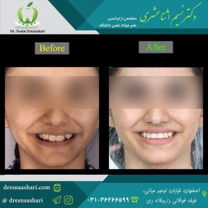 2. قبل و بعد ارتودنسی برای اصلاح بهم ریختگی دندان