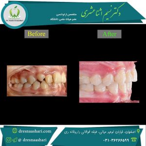 2. قبل و بعد از درمان فانکشنال تراپی و ارتودنسی ثابت دو فک